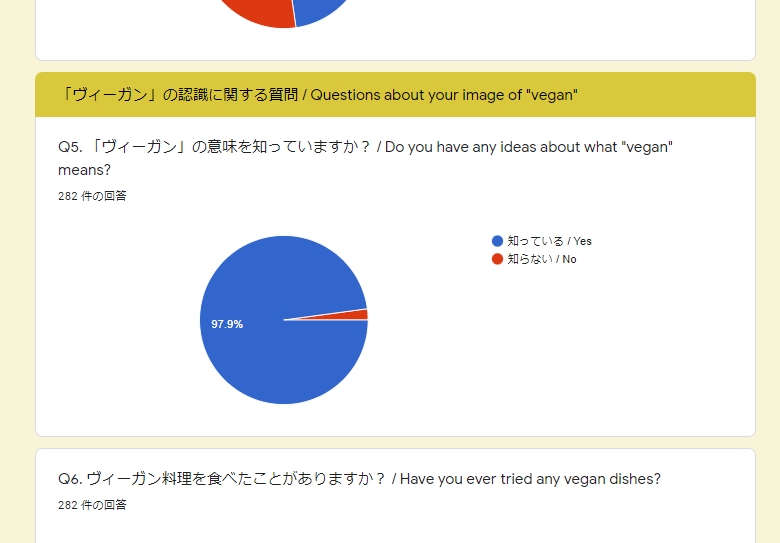 ヴィーガンに対する学生の意識調査をするため、Googleフォームを利用して大規模なアンケートを行ないました。